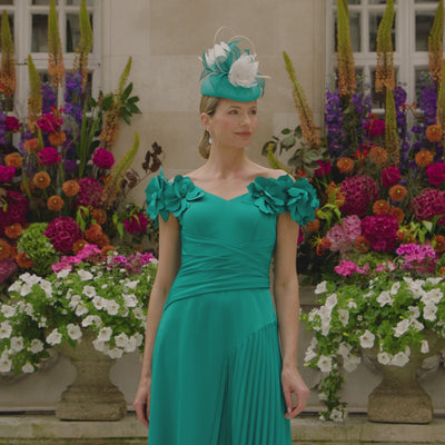 Pleated detailing with floral accents